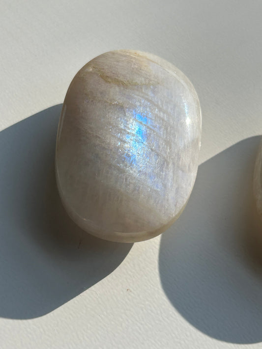 Super Flashy Smooth Polished Moonstone Palm Stone