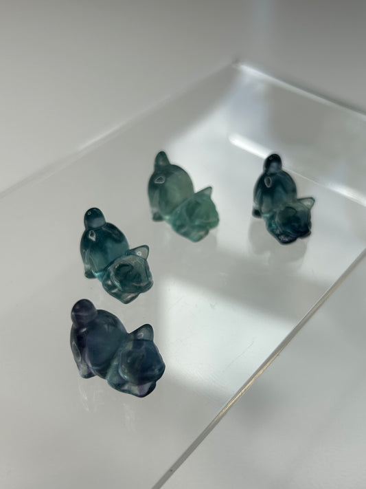Mini Fluorite playful cat carving
